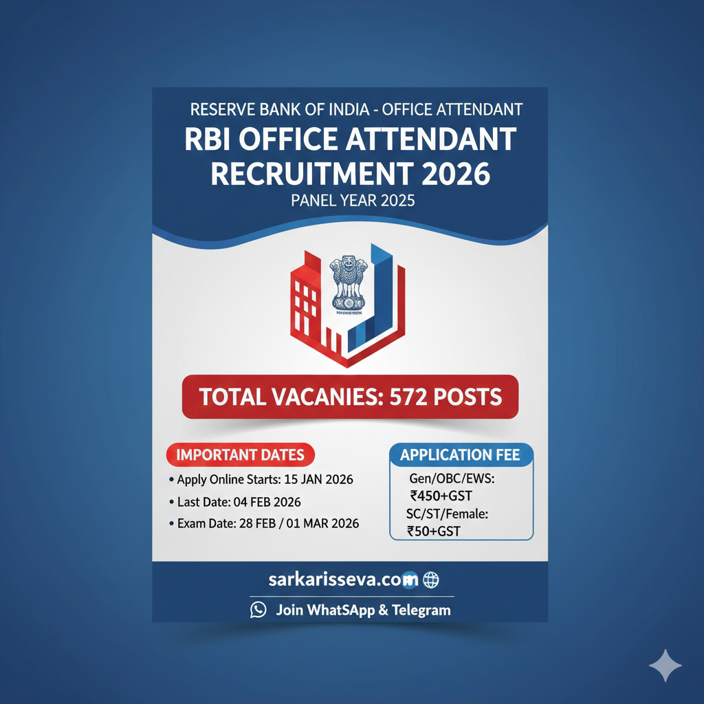 Short Information: Reserve Bank of India (RBI) invites online applications for the post of **Office Attendant**. Only 10th pass candidates can apply. Graduates are NOT eligible. Check full details on **sarkariseva.com**.